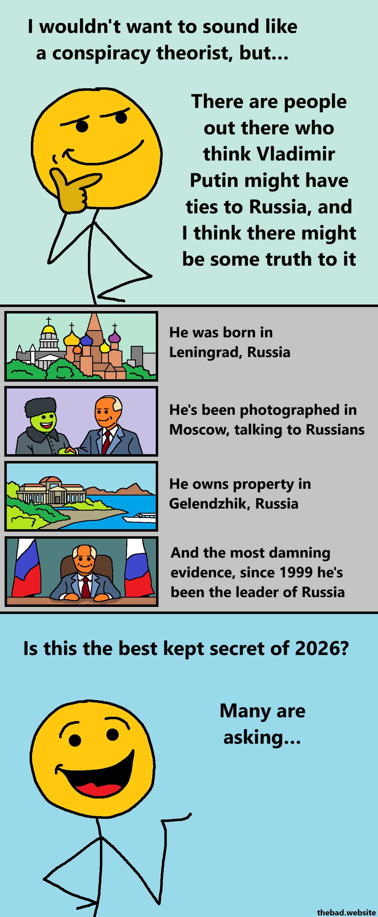 There are people out there who think Vladimir Putin might have ties to Russia, and I think there might be some truth to it